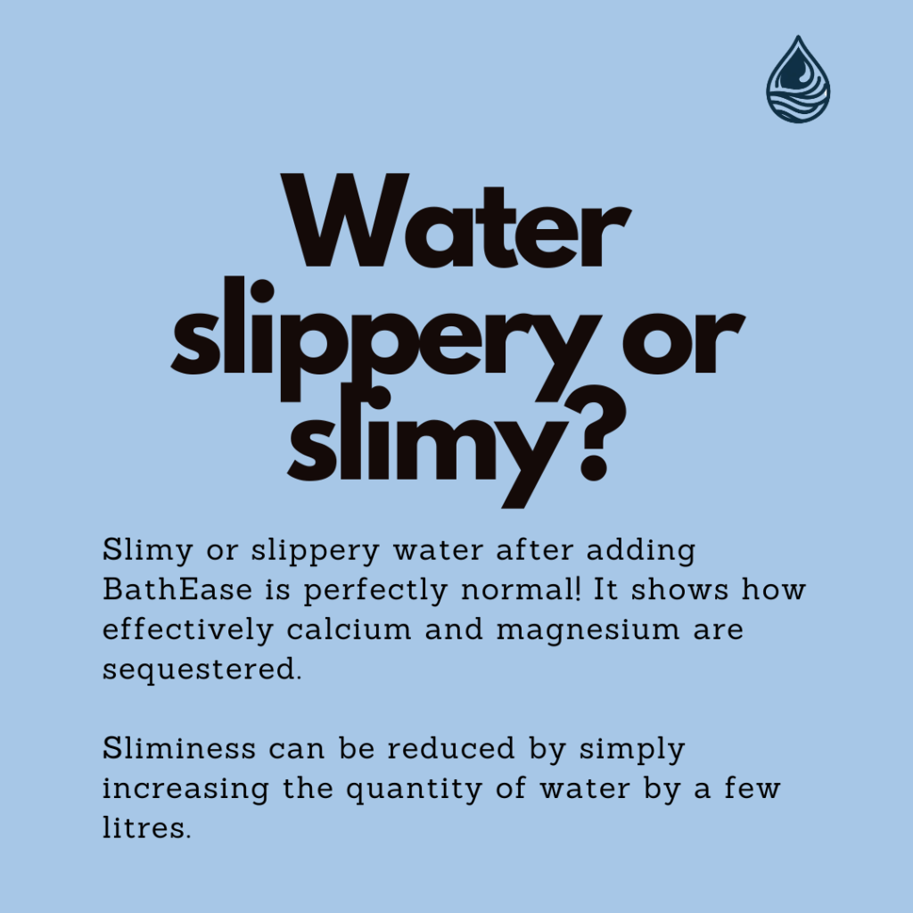 A few customers have reached out to us stating how their bathing water becomes slimy after adding BathEase water softener.